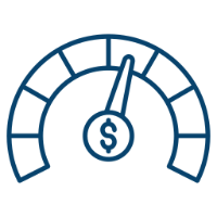 A blue speedometer graphic with a needle pointing right.
